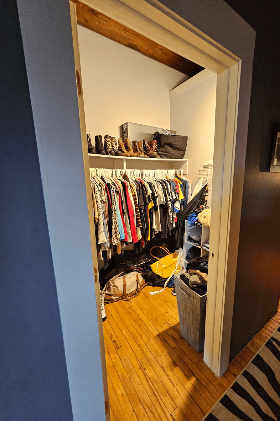 Our client envisioned a steam shower, more storage, and a bathroom that felt like a calming escape at the end of the day. To bring that vision to life, we reimagined the entire layout: removing the sauna, replacing the jacuzzi with a spacious steam shower, and expanding the closet to create more functional storage. A dramatic built-in storage wall anchors the space, delivering a custom look without the custom price tag.